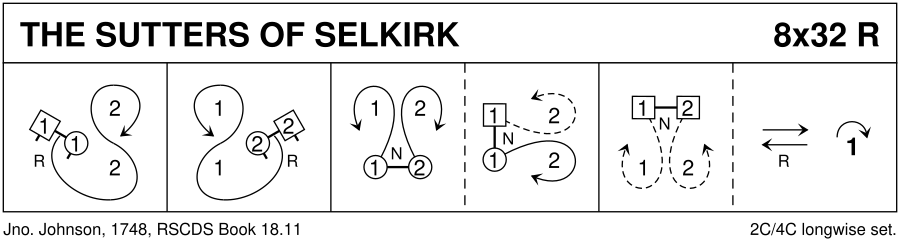 1-8 : 1s lead round 2M LSh & dance a full Fig of 8 round 2s & end in original places 9-16 : 2s (Lady on Mans left) lead round 1M RSh & dance a full Fig of 8 round 1s & end in original places 17-24 : 1M+2M lead between partners, cast round partner back to places, 1s lead down 1 place & cast back to places 25-32 : 1L+2L lead between partners, cast round partner back to places, 1s lead down 1 step, back to top & cast to 2nd places