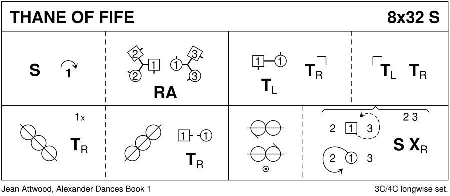 Strathspey · 32 bars · 3 couples · Longwise - 4 (Progression: 213) · Usual number of repetitions: 8