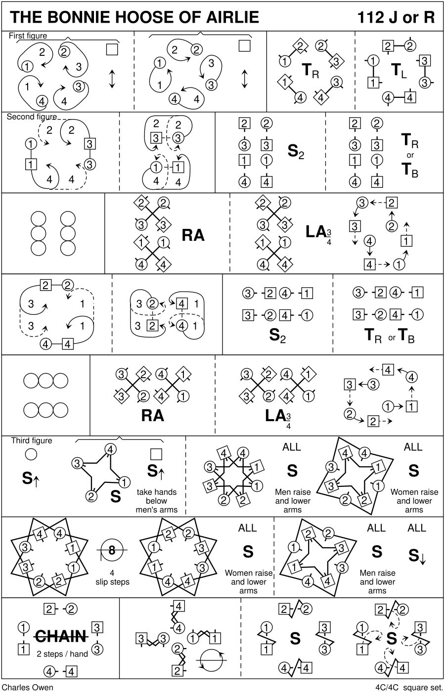 Versions of the instructions variously use "of Airlie" and "o' Airlie", Jig and Reel …