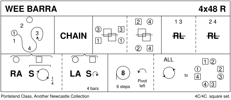 Reel · 48 bars · 4 couples · Square (Progression: ChangePtnr) · Usual number of repetitions: 4