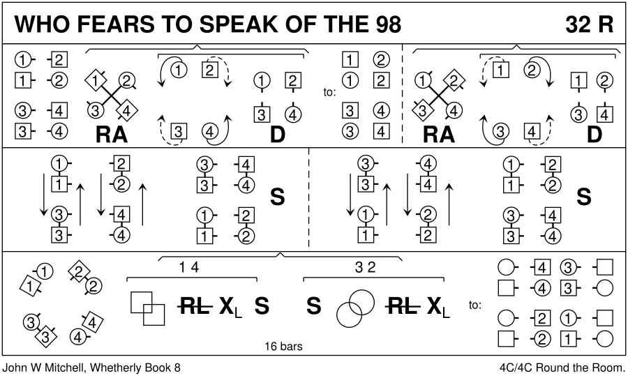 Editor’s note to the 2021 edition The original instructions stated a ladies' chain for second and third couple in bars 17-32. This would be an impractically long way for the ladies on the diagonal, such that we suggest a men's chain would be more appropriate and achieve the same effect.