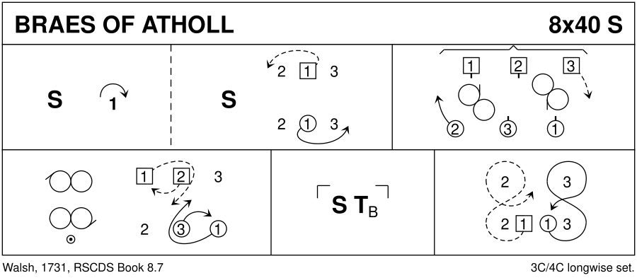 Strathspey · 40 bars · 3 couples · Longwise - 4 (Progression: 213) · Usual number of repetitions: 8