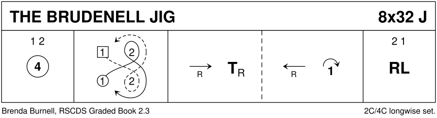 This dance is not to be confused with <<ddd:New Brudenell Jig>>, also by Brenda Burnell. The dance is named after the Brudenell Evening Institute, Leeds, UK. The deviser's husband taught Scottish Country Dancing there, and eventually became head of the Brudenell Evening Centre. (This information is taken from the note at the end of "The New Brudenell Jig", which appears in the 35th (Silver Thistle) Collection)