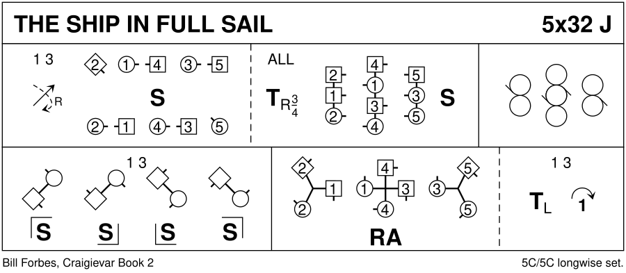 : 1W+2c, 1M+4c+3W, 3M+5c RHA ; 1c+3c turn LH and cast off (4c+5c up) (2,4,1,5,3)