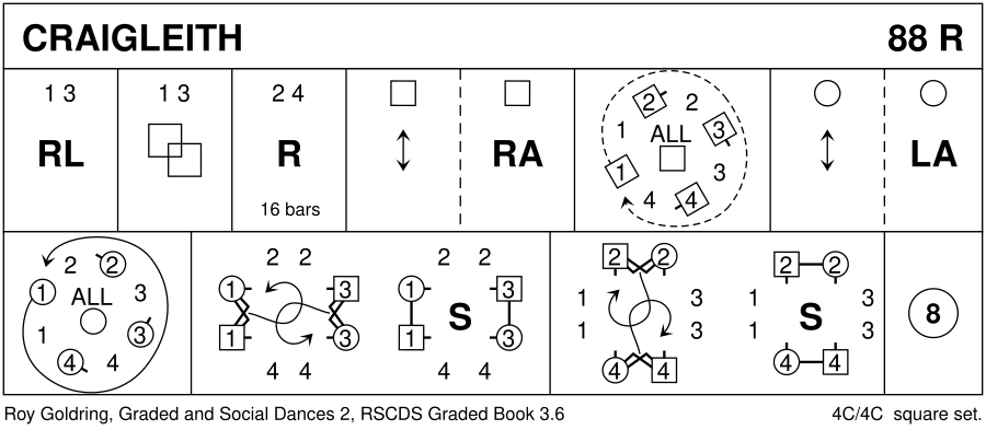 - Craigleith (R88, Roy Goldring: A Third Book of Graded Scottish Country Dances)