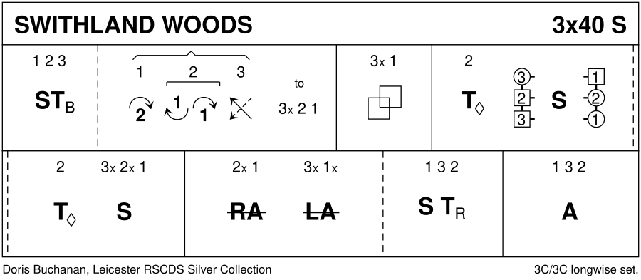 : All set | turn BH and face up in the middle NHJ ; 1c cast off to 3pl while{4} 2c dance up and cast to 2pl while{4} 3c dance up and cross to 1plx, 3M facing up, 3W facing down (3x,2,1)