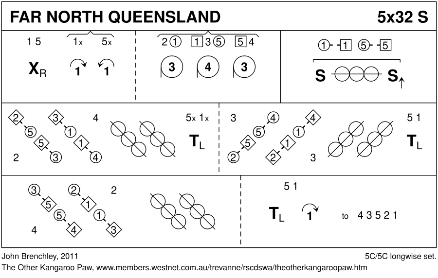 1- : 1c & 5c cross RH | cast inwards to midline BtoB with P (2c & 4c step out) ; 2c+1M & 1W+3c+5M & 5W+4c Circle L. On [8] 1c & 5c pull RSh back to face P on midline 9- : 1c & 5c set | ½ Reel4 | set advancing and pass P LSh to face 2cnrs 17- : ½ Reels4 on 2diag. On [20] 5c & 1s turn P LH to face 1cnrs[pos] ; ½ Reels4 on 1diag. On [24] 5c & 1c turn P LH to face 4cnrs[pos] 25- : ½ Reels4 on 2diag ; 5c & 1c turn P LH to own sides facing out | 5c & 1c cast off (3c & 2c up) (4,3,5,2,1)