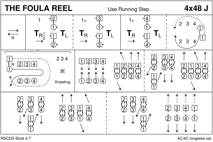 : 2c+3c+4c kneel down and clap **while** 1c (NHJ) dance down one on each side of W line, and up one on each side of M line