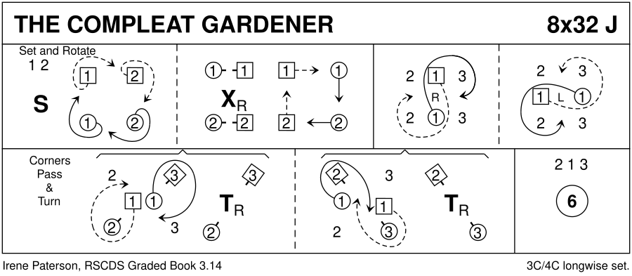 - The Compleat Gardener (J32, Irene Paterson: A Third Book of Graded Scottish Country Dances)