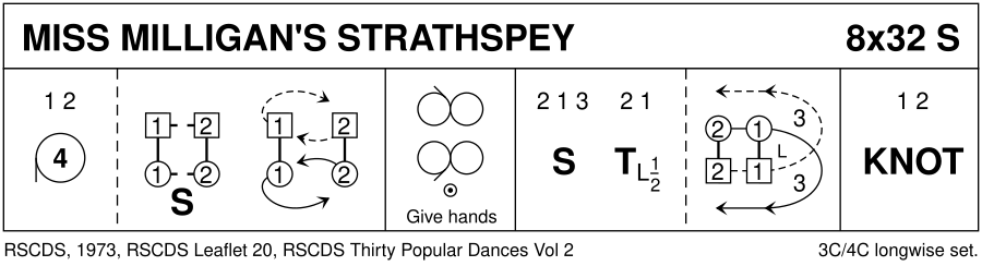 - Miss Milligan's Strathspey (S32, RSCDS: The Leaflet Dances with Music)